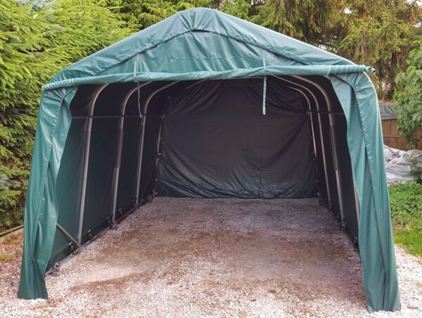 Ak vám stačí menej miesta alebo potrebujete ukryť auto pred nepriazňou počasia, pozrite sa na garážový stan, ktorý je možné otvoriť z dvoch strán. Tieto modely majú životnosť až 25 rokov a hodia sa aj ako mobilná dielňa či autodielňa.